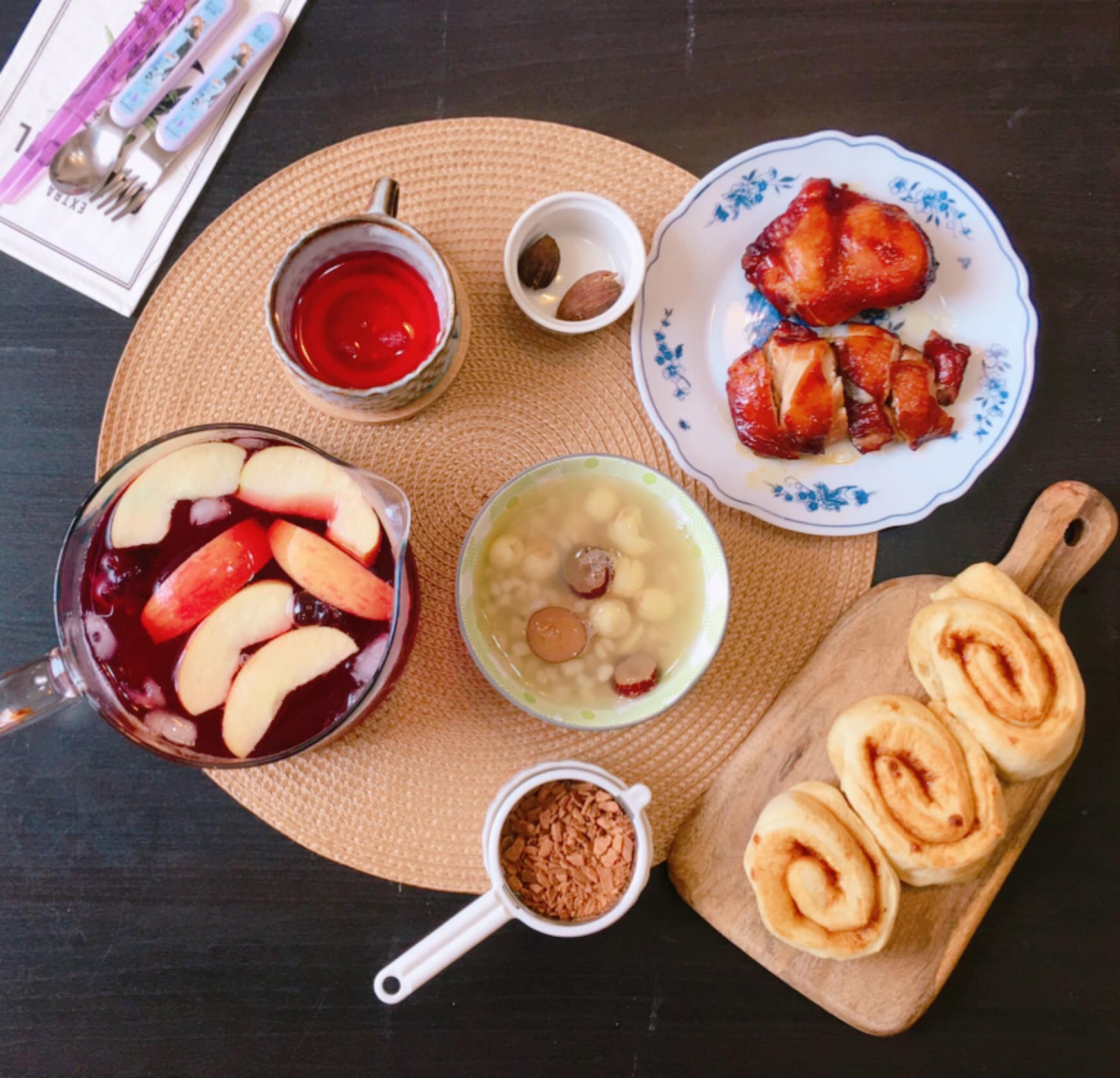 由於蓮子湯耗費時間較長,昨晚我先行將它完成了。從藥材化身的食物排滿了一桌,我向小Ros 介紹了每道菜,分別告訴她剛才體驗的藥材可以變成什麼食物。除了蓮子顆粒,其他每一樣她都吃的津津有味。