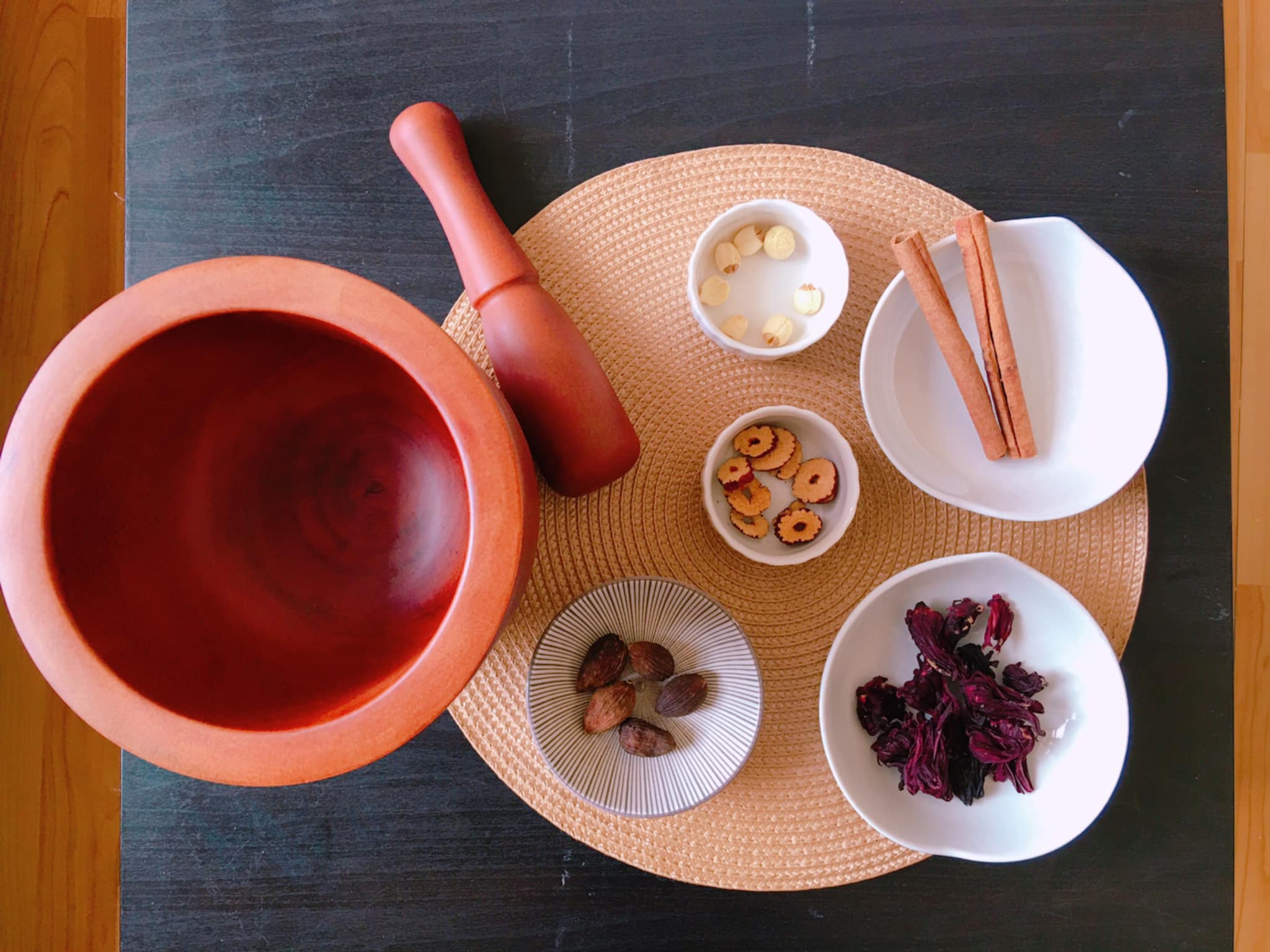 這次到中藥行買了適合幼兒可入食的藥材,熱心的店長向我推薦他們在兒童中藥營隊體驗過的紅棗、蓮子、草果、肉桂和洛神花。其中洛神花茶眾說紛紜,所以只讓小Ros 小啜幾口,嚐嚐味道。