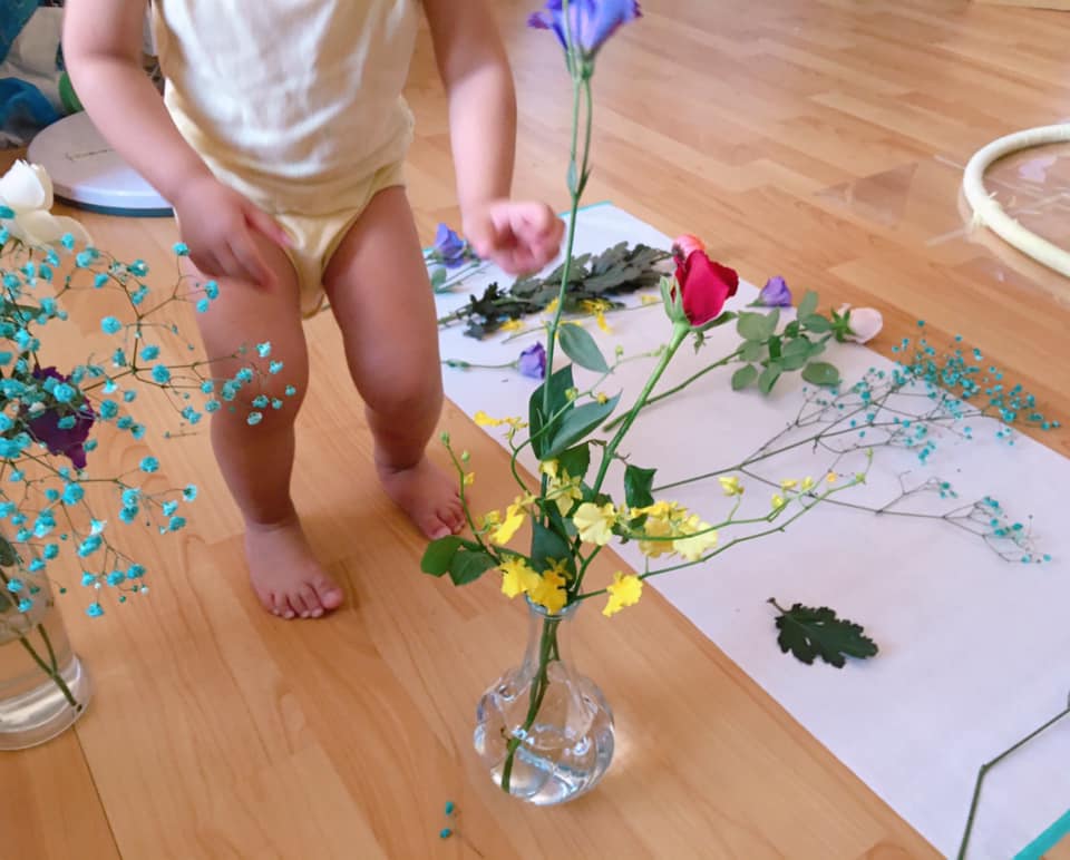 聞聞花香、觸碰柔軟花瓣,認識五顏六色的花朵與名字,小Ros從插花開啟了今日之作。